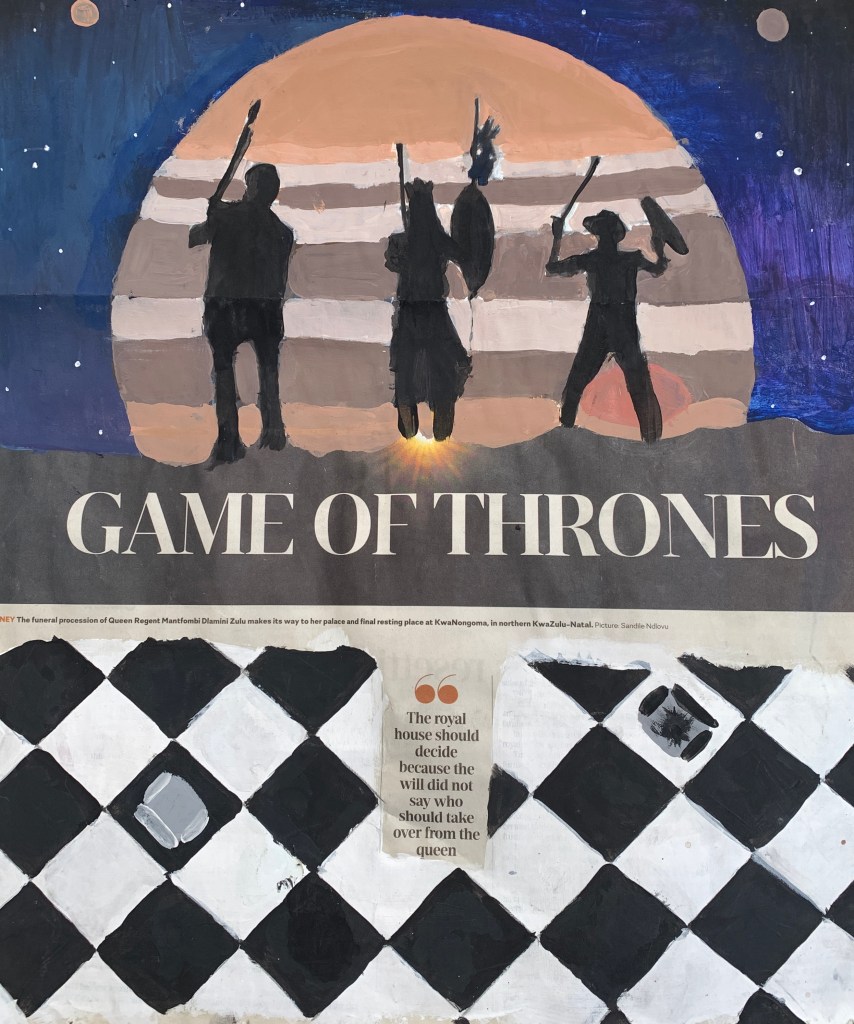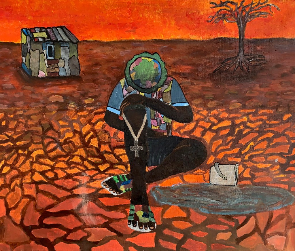 Students chose a famous painting and appropriated it after choosing a theme. Some chose themes based on personal interests, some on Social Issues. Artists they chose from included Rene Magritte, Merikokeb Berhanu, Takashi Murakami, Eduardo Lima, Grayson Perry, Franz Marc, Paul Ndema, Cosmas Shridzinomwa, Vinka Shonibare, Peter Wooldridge, Pablo Picasso, Salvador Dali…