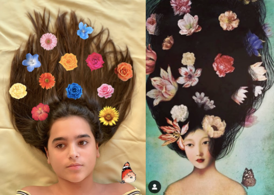 Looking at the work of Annie Leibotvitz, students were asked to create an dreamlike photo using milk, a bath and natural materials.