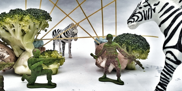 In this unit, students were asked to look at the works of Peter Csakvari, Akiko Ida and Pierre Javille. Given tiny figures and animals, as well as the option to use their surrounding environment or food, the students created their own “tiny world” photographs.