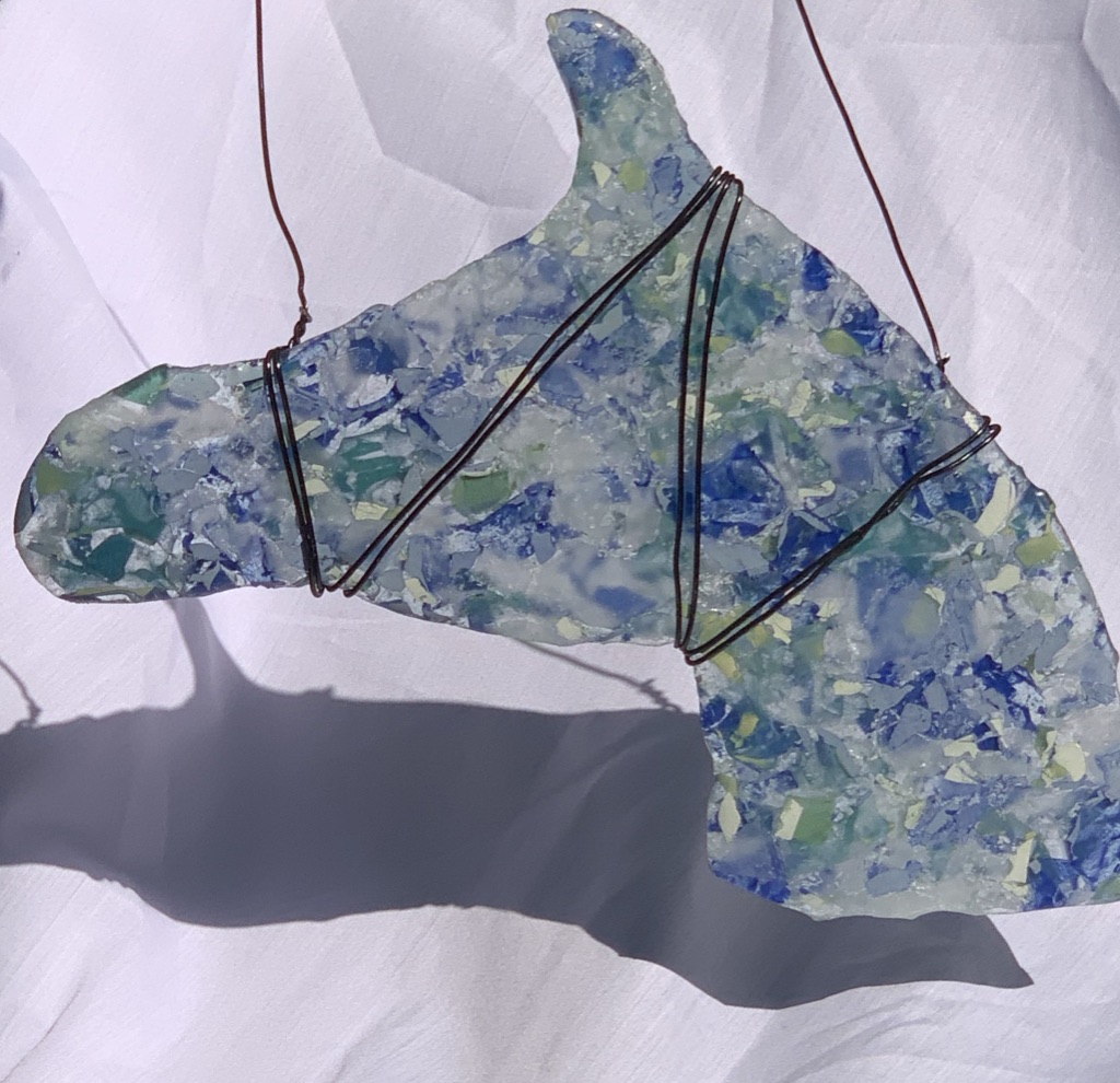 Using cardboard, plaster and acrylic paint, the students learned to value the process as much as the product. This unit’s process included the student creating a base out fo cardboard, using plaster bandages to cover it, then wet plaster, then sanding it smooth, priming it with glue and water, and finishing it with Acrylics.