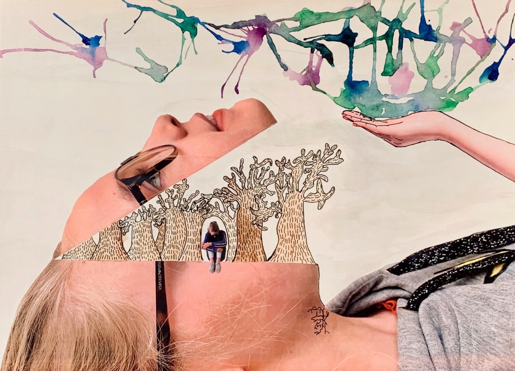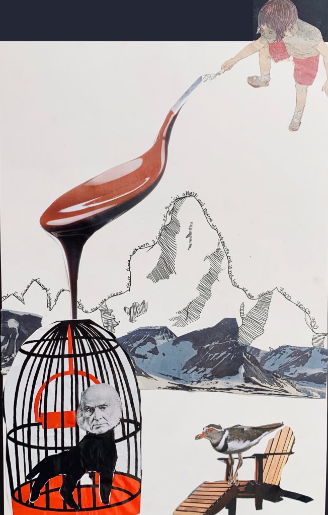 Looking at the Surrealist works of Salvador Dali, Rene Magritte and Marc Chagall, students use both collage and drawing media to complete their own Surrealist piece. Each student chose a theme to base their work around.
