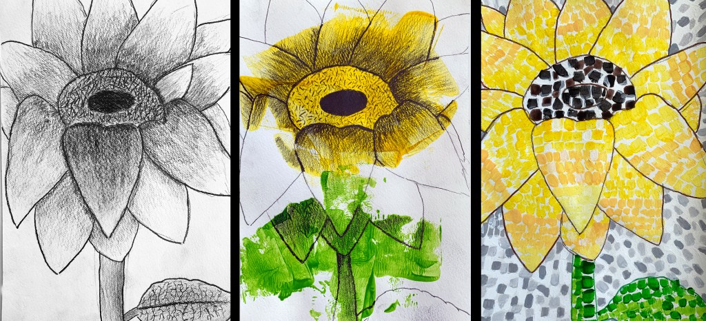 In Grade 6, students take a Visual Arts class for 6 weeks. Within this time period, students focus on creating work based on the Elements of Art and Principles of Design.
